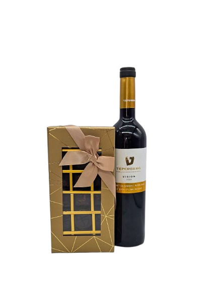An elegant box of 18 High quality Parve Belgian praline chocolates with various fillings wrapped with a 750ml bottle of wine.